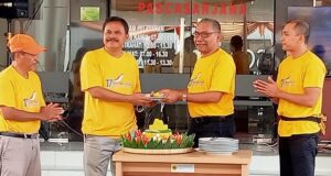 Kegiatan Dies Natalis ke-17 Universitas Mataram ini juga dimeriahkan dengan pemotongan tumpeng yang dipimpin oleh Prof. Ir. Muhammad Sarjan dan seluruh ketua program studi di Pascasarjana Universitas Mataram. (mk)