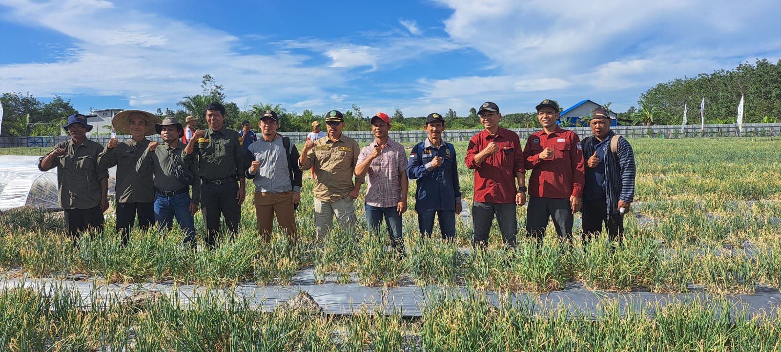Dia berhasil menanam bawang merah di lahan hortikultura dengan luas 2 hektar.