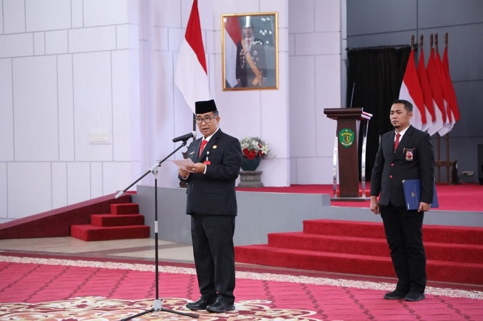Upacara Pelantikan dan Pengambilan Sumpah Janji Jabatan dilaksanakan di Pendopo Odah Etam, Komplek Kantor Gubernur Kaltim Jalan Gadjah Mada Samarinda, Senin (27/11/2023) pagi.