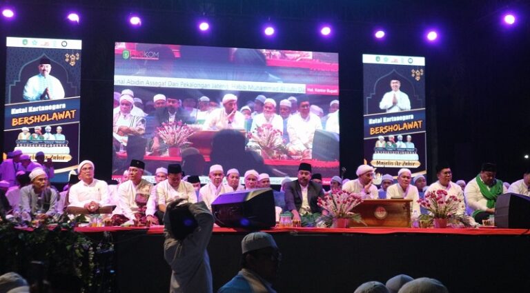 BERITAALTERNATIF.COM – Ribuan Muslim dari berbagai kecamatan menghadiri kegiatan Kukar Bersholawat yang diselenggarakan di Halaman Kantor Bupati Kukar pada Jumat (8/9/2023) malam.